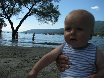 Mit einem Zewieinhalbjährigen und einem halbjährigen ist es aber auch egal was drumrum passiert, Hauptsache angenehmes und friedliches Klima, ein schattiges Plätzchen in der Mittagssonne, nette Nachbarschaft und frisches Obst und eine Eistheke in der Nähe. Badewasser (See oder Schwimmbad) in Sichtweite ist auch ein Argument. Und saubere Sanitäranlagen sind auch wichtig und hier im „Conca d´Oro“ Campingplatz vorhanden.